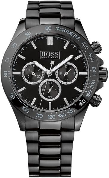 Luxus Hugo Boss karórák a Ikon kollekcióból. Ideális kiegészítők férfiaknak , akik előnyben részesítik az analóg és kerek alakú karórákat. A belül ellenálló 12 mm magas tokban, melyet minőségi acél alkot , megbízható elemes (quartz) gépezetet talál, mely 44 mm átmérőjű számlapot működtet. A számlapot ellenálló ásványi üveg véd. A tok fekete, számlap fekete