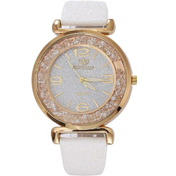 Shine Karóra Elegáns Shine karóra hölgyeknek szuper áron. Akár hétköznapokon is viselhető. A karórát apró ékkövek díszítik, melyek a csukló mozgására mozognak. Tulajdonságok: A karóra hossza: 24cm Az óratok mérete: 4cm Anyaga: Műbőr Szín: Fehér Vízállósága: A karóra csak cseppálló, ne érintkezzen vízzel. A víz miatt károsodott karórára nem vonatkozik a jót