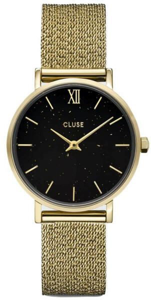 Ez a csodálatos CLUSE díszdoboz tartalmaz egy arany színű minimalista Minuit órát és egy további fekete bőrszíjat. Ez az arany színű Minuit óra speciális hálószíjjal és lenyűgöző fekete számlappal van díszítve, arany színű foltokkal. Az összes Minuit óraszíj felcserélhető, így könnyedén testre szabhatja rozsdamentes acél tokját a hangulatának megfelelően. Stí