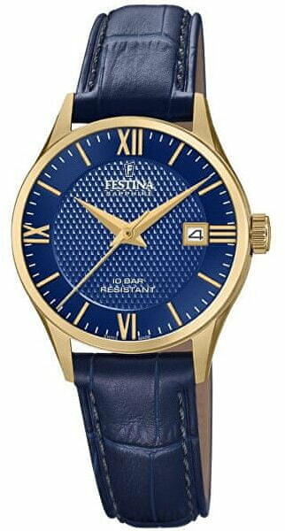 Az időtlen Festina óra világos számlapjával ideális kiegészítője mind a hivatalos, mind az alkalmi öltözékeknek . Ez a kerek, acél tokkal ellátotttársadalmi óra kvarc (elemes)óraművel működik, a 3 órás pozícióban dátumkijelzővel. A kék számlapon az időt római számok mutatják aranyszínű indexekkel kombinálva. A számlapot lapos zafírüveg borítja, és a 100 mét