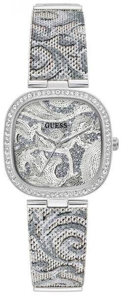 Eredeti Doboz, Pontos óraszerkezet , Kiváló minőségű anyagok, kifinomult tervezés 2év Magyar jótállás, 15 napos pénzvisszafizetés Guess Tapestry női óra karóra GW0304L1 nemesacél tok, ezüst bevonat, csiszolt nemesacél szíj, ezüst bevonat, csiszolt, klip kapoccsal Quartz szerkezet, elemes vízállóság tok kőberakással számlap szín ezüst / szürke ház szélesség around