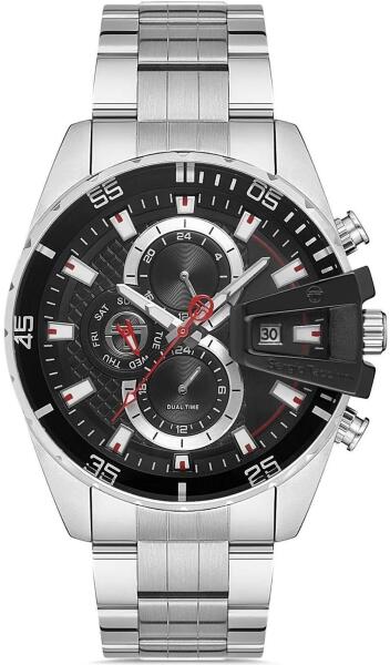 - Tok alakja: kerek - Tok és karperec anyaga: acél - Vízállóság: WR. 50M (5ATM) - cseppálló, felszíni úszáshoz alkalmas - Üveg: ásványi (edzett, rendkívül ellenálló a törésre, nehéz megkarcolni). - Mechanizmus: kvarc, elemmel működik - Tok szelessége: 44 mm. - Tok vastagsága: 12 mm.