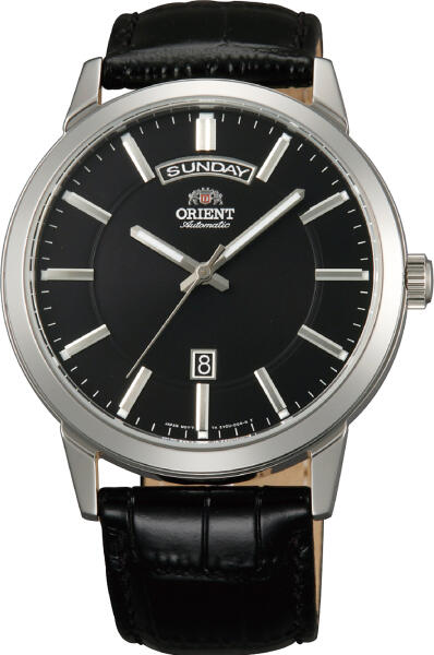 Orient Classic férfi karóra típusa FEV0U003BH. Orientférfi karóra tok anyaga nemesacél, színe ezüst, a szíj anyaga bőr és a színe fekete. A z óratok átmérője 42mm, alakja kerek. Akaróra üvege kristály (nehezen karcolható), szerkezete automata és vízállósága 5 atm (50m). Az ORIENT egy több mint 70 éves múltra visszatekintő tradícionális Japán óramárka. Jelenleg a S