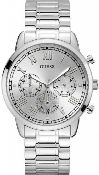Márka: GUESS | Modell: GW0066G1 | Garancia: 2 évek | Szín: ezüst | Tok színe: ezüst árnyalat | Tok anyaga: nemesacél | Táplálás: elem | Szíj anyaga: nemesacél | Funkciók: 24-órás számlap | Funkciók: Dátum – a hónap napja | Funkciók: Dátum – a hét napja | Vízálloság: 50M/5ATM | Üveg: ásványi | Forma: kerek | Csatolás típusa: zsanérzár | Számjegyek a számlapon: