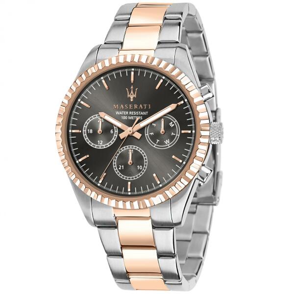 Maserati Competizione férfi karóra R8853100020 egy kerek formájú, ezüst színű nemesacél óratokkal, fekete analóg számlappal és bicolor nemesacél szíjjal rendelkező divatos Maserati karóra. Az óra elemmel működő kvarc szerkezettel és 10 ATM vízállósággal rendelkezik, tehát fürdésre, úszásra használható. Ez a fantasztikus óra most 107900 áron megrendelhető webshopu