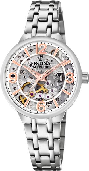 A Festina 20614/1 női automata karóra minden olyan hölgy számára alkalmas, akinek van érzéke a részletekhez. Olyan egyedi dizájnt kínál, amely garantáltan észrevétlen marad. A rózsaarany számlap dizájnja még mindig időtálló, ezért nem szabad kihagynia egyetlen nőnek sem, aki szereti az eredetiséget és a stílust. Az ezüst órák könnyen és egyszerűen kombinálhatók m