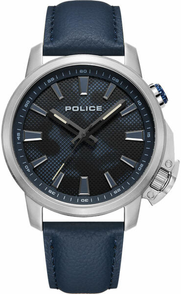 Police Kavalan férfi karóra PEWJD2202703 egy kerek formájú, ezüst színű nemesacél óratokkal, kék analóg számlappal és kék valódi bőr szíjjal rendelkező divatos Police karóra. Az óra elemmel működő kvarc szerkezettel és 5 ATM vízállósággal rendelkezik, tehát mérsékelten vízálló. Ez a fantasztikus óra most 69900 áron megrendelhető webshopunkban, melyre 24 hónap