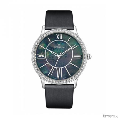 Swiss Made női karóra! Ezüst színű, 100% rozsdamentes acél óratok. Ezüst színű mutatók és rakott indexek. Az asszimetrikus sötétszürke gyöngyház hatású számlapon "gilosált" virág motívum. Eredeti Swarovski kövekkel díszített lünetta. Karcálló zafír üveg. Megbízható svájci Ronda quartz szerkezet. Magas minőségű, fekete színű valódi bőrszíj. Az igazán eleg
