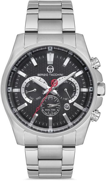 TOMI Karóra Különleges TOMI karóra uraknak. A karóra modern kialakítása miatt nem csak hétköznapokon viselhető, hanem különleges alkalmakkor is. A karóra része a teljes naptár, antimagnetikus és ellenáll a rázkódásnak. Rozsdamentes acélból készült. Ajándékdobozban szállítjuk. Tulajdonságok: A karóra hossza: 24cm Az óratok mérete: 4cm x 4cm Szín: Fekete/Ezüst Anyag