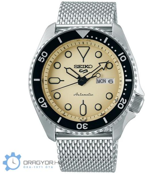 Gyártó: Seiko Modell: SRPD67K1 Tulajdonságok: Vízállóság szűrő: fürdésre - úszásra alkalmas Szerkezet típusa: Mechanikus (automata) Óratok anyaga: Nemesacél Szíj: Fémszíj Üveg: Ásványi üveg Vízállóság: 100 m Óratok színe: Ezüst Számlap színe: Bézs Szíj szín: Ezüst Óratok szélesség: 42 mm Funkciók: Dátum, Nap neve kijelzés (SRPD67K1)