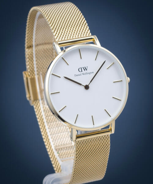 Daniel Wellington Petite Evergold női karóra DW00100346 egy kerek formájú, arany színű nemesacél óratokkal, fehér analóg számlappal és arany nemesacél szíjjal rendelkező divatos Daniel Wellington karóra. Az óra elemmel működő kvarc szerkezettel és 3 ATM vízállósággal rendelkezik, tehát cseppálló. Ez a fantasztikus óra most 67900 áron megrendelhető webshopunkban, mely