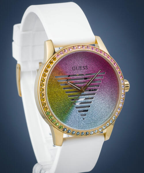 GUESS GW0589L1 karóra QUARTZ- a kvarcmű a pontos időimpulzusok szilíciumkristály segítségével történő előállítására utal. Egyszerűségének köszönhetően nagyon megbízható, és csak kis mennyiségű energiát fogyaszt, ami az akkumulátor élettartamára is hatással van. Az első kvarckristályos órák 1950 körül készültek Kanadában. Ásványi üveg- Az ásványi üveg