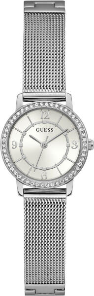 Elegáns női Guess GW0534L1 karóra a Melody kollekcióból. QUARTZ- a kvarcmű a pontos időimpulzusok szilíciumkristály segítségével történő előállítására utal. Egyszerűségének köszönhetően nagyon megbízható, és csak kis mennyiségű energiát fogyaszt, ami az akkumulátor élettartamára is hatással van. Az első kvarckristályos órák 1950 körül készültek Kanadába