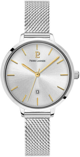 Rozsdamentes acél női karóra. Ezüst színű tok és acél szíj. Sárga arany színű mutatók és indexek. Dátum kijelzés. Rozsdamentes acél milánói szíj biztonsági zárral. Könnyen leolvasható ideális méretű óratok! Óraszerkezet : TM (japán) quartz Óraszíj : Rozsdamentes acél Óratok anyaga : Rozsdamentes acél Óratok mérete : 34mm Óraüveg : Ásványi üveg Vízállós