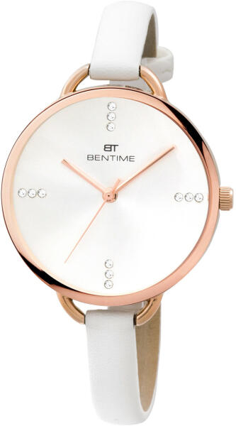 Az elegáns és csillogó Bentime márkájú óra minden hölgyet elvarázsol gyengéd kivitelezésével. Az aranyozott tok része a fehér számlap, ahol az indexek helyén cirkóniumok találhatóak, és ezek az órának csillogás biztosítanak be. A számlapot minőségi ásványi üveg védi.