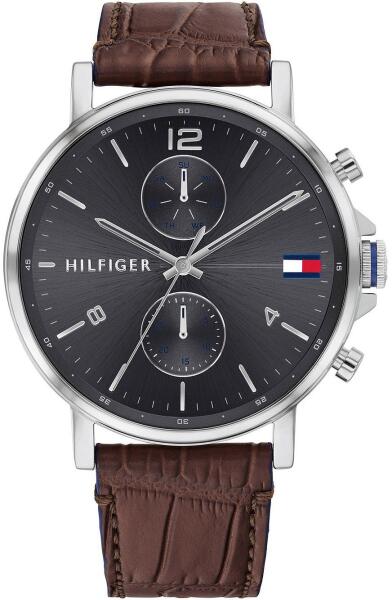 Leírás: Cél (kinek): Férfiak Márka: Tommy Hilfiger Stílus: Sportos Vízállóság: 50 m Szíj színe: barna Szíj anyaga: bőr Számlap színe: fekete Számlap: Analóg Mozgás: Kvarc elem Üveg: Ásványi Test/tok: acél A tok színe: ezüst Óra alakja: kerek Szíj szélessége: 22 mm A ház átmérője: 44 mm Garancia: 2 év Súly: 62 g