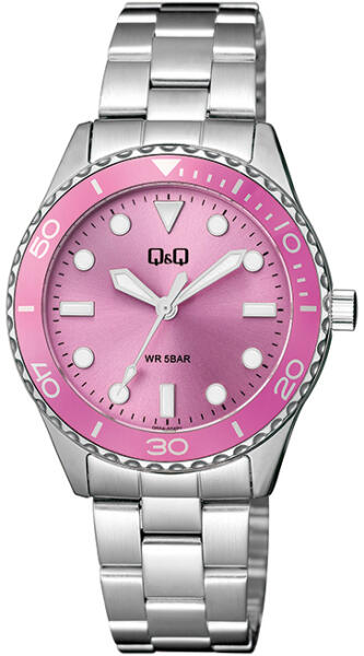 Márka: Q&Q | Kollekció: SPORTS | Modell: Q55A-004PY | Garancia: 2 évek | Szín: rózsaszín | Szín: ezüst | Tok színe: ezüst árnyalat | Táplálás: elem | Szíj anyaga: nemesacél | Vízálloság: 50M/5ATM | Üveg: ásványi | Forma: kerek | Csatolás típusa: zsanérzár | Számjegyek a számlapon: indexek | Rendeltetés: női | Minimális kerület: 14 | Termék típusa: karórák |