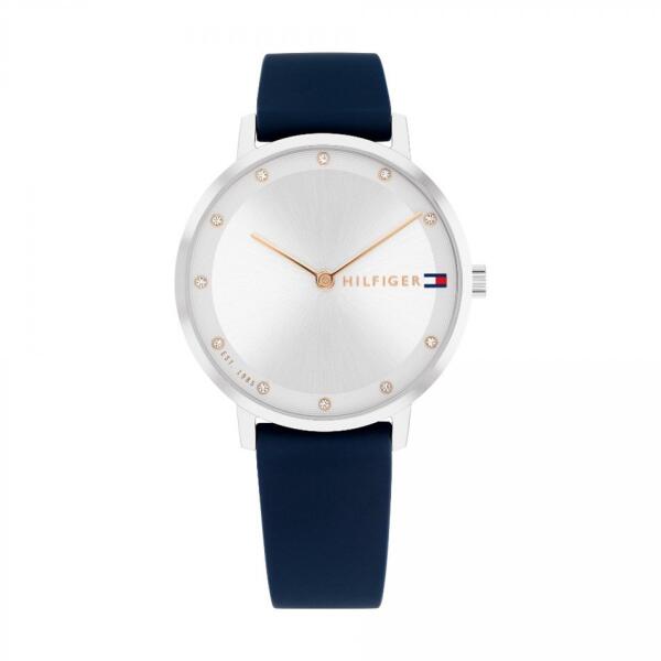 A Tommy Hilfiger Pippa női karóra TH1782732 karóra házának anyaga Nemesacél, színe Ezüst, a szíjának anyaga Szilikon és a színe Kék. Az óratok átmérője 34 mm, alakja Kerek. A karóra üvege Kristály (nehezen karcolható), szerkezete Kvarc és vízállósága 3 atm (30m) (cseppmentes).
