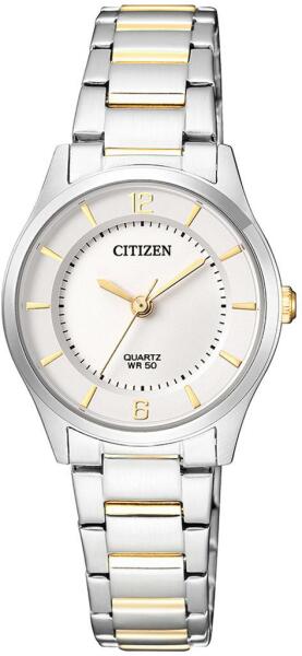 "SKU":"CZER0201-72A", "márka":"Citizen", "szíj szín":"két tónusú (ezüst- és sárga arany-)", "szíj szélesség":"16 mm", "keret":"fix", "keret szín":"ezüst-", "keret anyag":"nemesacél", "ház szín":"ezüst-", "ház átmérő":"27 mm", "ház anyag":"nemesacél", "ház alak":"", "ház átmérő":"6 mm", "csat":"Fold Over Push gomb Release", " szín":"fehér", " típus":"analóg", "jelle