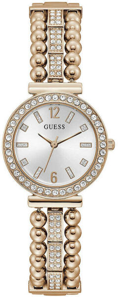 A stílusérzékkel rendelkező, elegáns nők kiegészítője. Bemutatjuk a Guess GW0401L3 női karórát. Első pillantásra vonzani fog az egyedi design, amely tökéletesen kiegészít minden divatos megjelenést. Az óra rózsaarany színű változata nagyon népszerű a női kiegészítők terén - könnyen kombinálhatod más divatos darabokkal. A kerek formájú, tömör tokot csillogó kr