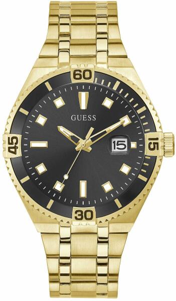 Ha olyan darabot keres, amellyel kitűnhet a többiek közül, nézze meg ezt az érdekes Guess GW0330G2 férfi karóra modellt. A népszerű fekete és arany színkombináció gyönyörűen mutat a férfi csuklóján. A fekete kijelző egyszerű, számjegyeket nem találsz rajta, csak minimalista indexeket. A recézett lünetta adja meg ennek a modellnek az egyediségét. Az óra rendelkezik a n