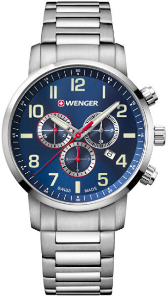 Márka: WENGER | Kollekció: ATTITUDE | Modell: 01.1543. 111 | Szín: fekete | Tok színe: bicolor árnyalat | Tok anyaga: nemesacél | Táplálás: elem | Szíj anyaga: bőr | Funkciók: Dátum – a hónap napja | Funkciók: Stopper 1/10 másodperc - 30 perc | Karóra/számlap átmérője: 44 mm | Vastagság: 12 mm | Vízálloság: 100M/10ATM | Üveg: ásványi zafír réteggel | Forma: kerek |