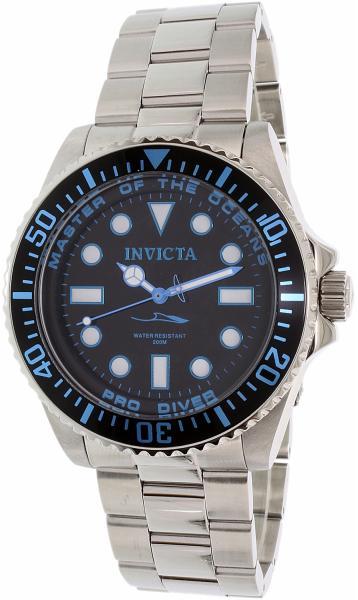 Klasszikus Invicta karórák a Pro Diver kollekcióból. Ideális kiegészítők férfiaknak , akik előnyben részesítik az analóg és kerek alakú karórákat. A belül ellenálló 12 mm magas tokban, melyet minőségi acél alkot , megbízható elemes (quartz) gépezetet talál, mely 43 mm átmérőjű számlapot működtet. A számlapot ellenálló ásványi üveg véd. A tok ezüst, számla