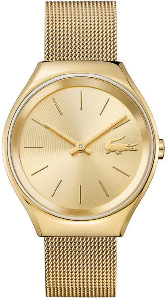 Divat Lacoste karórák a Valencia kollekcióból. Ideális kiegészítők nőknek , akik előnyben részesítik az analóg és kerek alakú karórákat. A belül ellenálló 8 mm magas tokban, melyet minőségi acél alkot , megbízható elemes (quartz) gépezetet talál, mely 38 mm átmérőjű számlapot működtet. A számlapot ellenálló ásványi üveg véd. A tok arany, számlap arany és