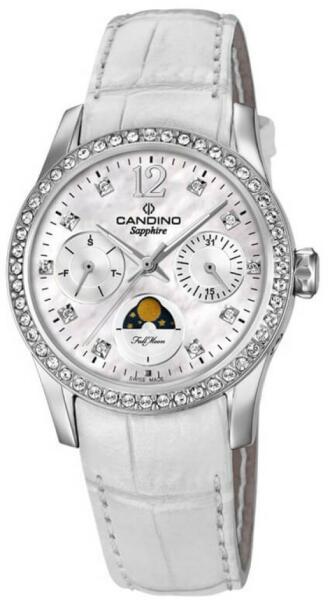 Márka: CANDINO | Kollekció: LADY PETITE | Modell: C4684/1 | Garancia: 2 évek | Szín: gyöngyház | Szín: fehér | Tok színe: ezüst árnyalat | Tok anyaga: nemesacél | Táplálás: elem | Szíj anyaga: bőr | Funkciók: Dátum – a hónap napja | Funkciók: Dátum – a hét napja | Vízálloság: 50M/5ATM | Üveg: zafír | Forma: kerek | Csatolás típusa: standard felcsatolás | Rendelte