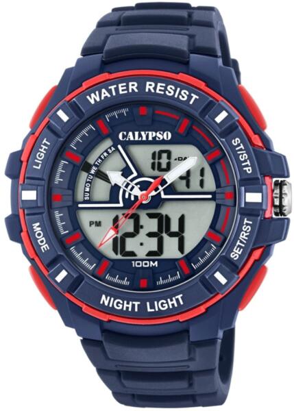 A Calypso kombinált karóra ideális kiegészítő minden aktív férfi számára, aki kedveli a sportos, de egyben divatos kiegészítőket. Az óra számos hasznos funkcióval rendelkezik – stopper, hangjelzéses ébresztő, óránkénti emlékeztető, 12/24 órás időbeállítás, a hét napja és dátum.
