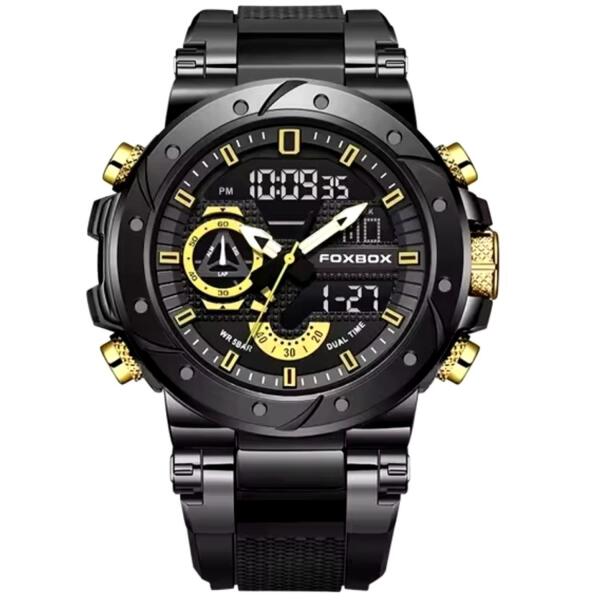 FOXBOX Teo karóra Ez a FOXBOX Teo karóra a technológia és a dizájn mesterművét képviselik. Úgy tervezték, hogy magára vonzza a figyelmet minden helyzetben. Elegáns és kifinomult, tökéletes választás mindenkinek, aki értékeli a luxust és a pontosságot. A karóra tokja tartós acélból készült, amely hosszú élettartamot és magas szintű ellenállást garantál a mindennapi