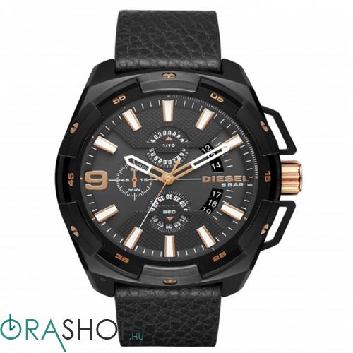 Óra kollekció Diesel. Kerek tárcsás modell, bőrszíjat. - Mechanizmus: kvarc, elemmel működik - Üveg: ásványi (edzett, rendkívül ellenálló a törésre, nehéz megkarcolni). - Vízállóság: WR. 100M (10 ATM) - úszni lehet vele, merülni nem (aqualung). - Kronográf és dátum kijelző. - Szíj anyaga: valódi bőr - Tok vastagsága: 14 mm. - Tok szelessége: 52 mm. Összetétel: te