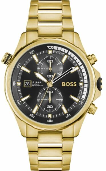 Jellemzők: Márka - Hugo Boss Garancia - 2 év Szín - arany Számlap színe - fekete Mozgás - akkumulátor Vízállóság - 100M/10ATM Üveg - ásvány Számok a számlapon - indexek Cél - férfi Típus - tű Súly - 173 g Szíj szélessége - 24-20 mm Átmérő - 45 mm Vastagság - 11,5 mm Szíj anyaga - rozsdamentes acél Stílus – sportos