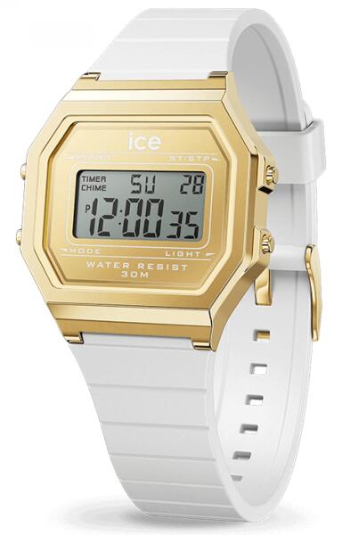 Ez egy Ice-watch márkájú, 022049 típus számú, ICE digit retro női karóra. A tokjának anyaga plasztik, a szíja szilikonból készült. Az óratok mérete 32 mm, üvege kristály és vízállósága 30 m. Az óra quartz szerkezettel ellátott. analóg szerkezet