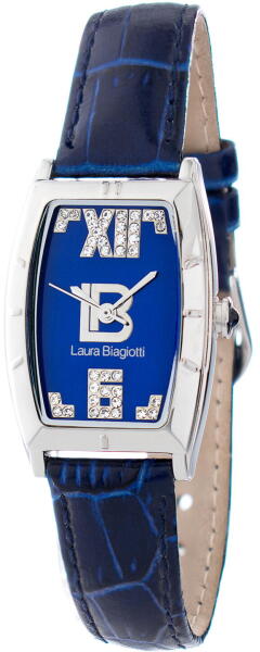 Laura Biagiotti bőrszíjas, ultra elegáns, kis számlapos luxus női karóra strasszokkal (22 MM) dobozzal, kék. Letisztult, elegáns, kis számlapos márkás karóra, nagyvilági hölgyeknek, a manapság legdivatosabb kék színben, apró strasszokkal és a tervező monogramjával díszítve. Élőben még szebb mint a fotón. A római számok strasszokból vannak kirakva, rendkívül egyedi d