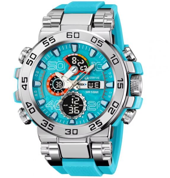 STRYVE Felipe karóra Legyen feltűnő a STRYVE Felipe karórával, amely modern és sportos stílust hoz létre a kivételes színkombinációjával. Ez a karóra olyan urak számára készültek, akik szeretik az adrenalint és a kalandokat, miközben figyelnek a stílusos megjelenésre. Az ellenálló dizájn és a praktikus funkciók tökéletesek a mindennapi viselethez és aktív sporttevék