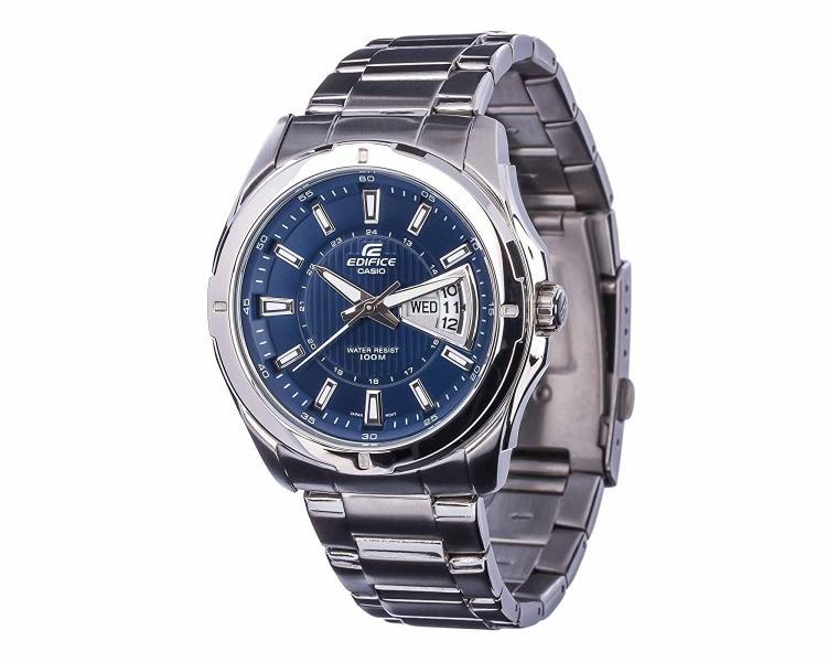 Casio Edifice férfi karóra. Referenciaszám: EF-129D-2A Súly: 156 gramm Méret: 44,8 x 49 x 10,4 mm Foszforeszkálás A számlapra felvitt foszforeszkáló rétegnek köszönhetően, sötétben még hosszabb ideig látható az idő, akkor is ha csak rövid ideig érte fény az órát. Mechanikus naptár A bal és a jobb oldali segédszámlapokról leolvasható a nap és a nap neve. Edzett krist