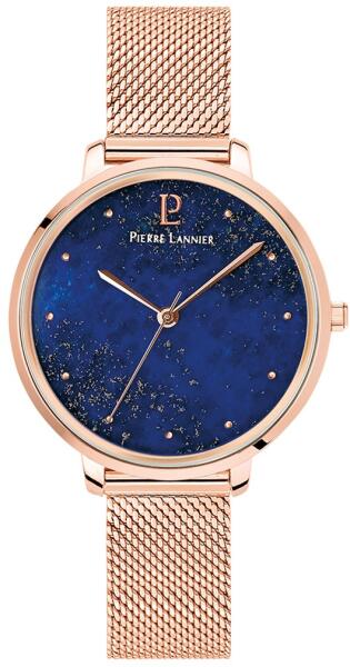 100% rozsdamentes acél női karóra, rozé arany színű PVD bevonattal. Különleges mintázatú, valódi Lazúrkő (lapis lazuli drágakő) számlap. Rozé arany PVD bevonatú mutatók és indexek. Megbízható japán Miyota kvarc szerkezet. Rozsdamentes acél milánói szíj biztonsági zárral. Igazán nőies ideális méretű óratok! A Lapis Lazuli az "uralkodók köve". Óraszerkezet : Miy