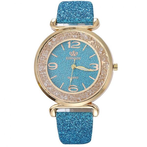 Shine Karóra Elegáns Shine karóra hölgyeknek szuper áron. Akár hétköznapokon is viselhető. A karórát apró ékkövek díszítik, melyek a csukló mozgására mozognak. Tulajdonságok: A karóra hossza: 24cm Az óratok mérete: 4cm Anyaga: Műbőr Szín: Kék Vízállósága: A karóra csak cseppálló, ne érintkezzen vízzel. A víz miatt károsodott karórára nem vonatkozik a jótál