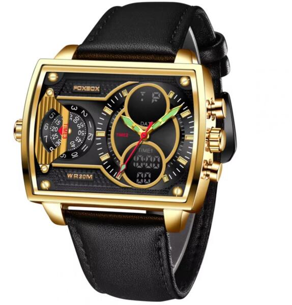 FOXBOX Rectangle karóra Ez a modern FOXBOX Rectangle karóra a magas szintű funkcionalitást ötvözi az exkluzív dizájnnal a modern férfiak számára. A karóra tokja tartós acélból készült, amely hosszú élettartamot és magas szintű ellenállóságot biztosít a mindennapi viselése közben. A fekete bőr szíj luxust és kényelmet kölcsönöz a karórának. Kiegészítő funkció