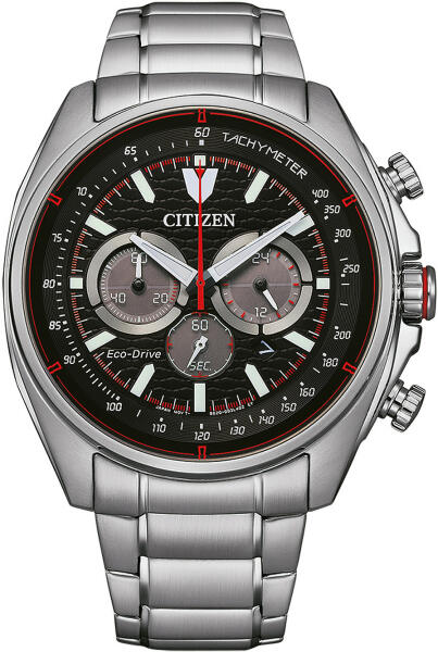 Citizen Chronograph Eco-Drive férfi karóra típusa CA4561-89E. A Citizen márka műhelyéből származó óra olyan divatos úriemberek számára van tervezve, akik kedvelik a magas minőségű kiegészítőket. A fekete számlap három kronográfot tartalmaz stopper funkcióval, 24 órás időkijelzővel, fordulatszámmérő skálával és dátumkijelzővel. A teljes nemesacél kivitelezése t