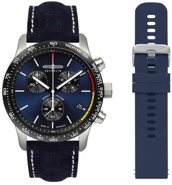 Gyártói szám. : 7288-3_set Manufacturer series: Nightcruise Kronográf Óra 42mm 10ATM funkciók: Kronográf Óra, dátum, óra, perc, másodperc szerkezet: elemes (Quartz) szerkezet label: ETA, G10.212, Swiss Made számlap szín: kék kijelző: analóg vízállóság: 10 keret: fix felület : matt tok szín: fekete, ezüst tok anyag: nemesacél tok átmérő: 13 tok alak: kerek ház szélessé