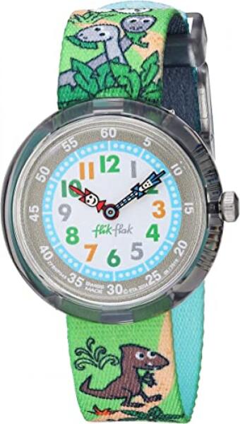 Flik Flak Sauruses Return fiú gyerek karóra ZFBNP048 egy kerek formájú, szürke színű bio műanyag óratokkal, szürke analóg számlappal és színes újrahasznosított műanyag szíjjal rendelkező divatos Flik Flak karóra. Az óra elemmel működő kvarc szerkezettel és 3 ATM vízállósággal rendelkezik, tehát cseppálló. Ez a fantasztikus óra most 16900 áron megrendelhető websho