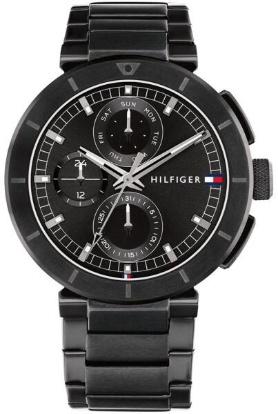 A Tommy Hilfiger Lorenzo férfi karóra TH1792119 karóra házának anyaga Nemesacél, színe Fekete, a szíjának anyaga Nemesacél és a színe Fekete. Az óratok átmérője 44 mm, alakja Kerek. A karóra üvege Kristály (nehezen karcolható), szerkezete Kvarc és vízállósága 5 atm (50m) (erősen cseppálló).