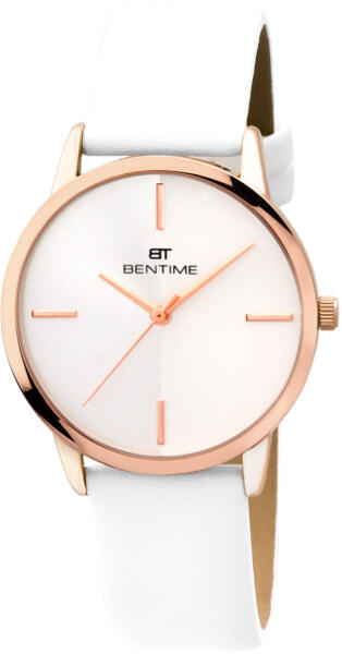 A Bentime márka műhelyéből származó óra ideális olyan hölgyeknek akik szeretik a minimalista kivitelezést. Első pillantásra a legjellegzetesebb eleme az aranyozott fém tok és a négy indexel és diszkrét mutatókkal ellátott számlap.