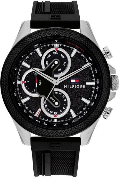Férfi Guess GW0009G1 óra sportos-elegáns stílusban. Alkalmas minden férfi számára, akinek van érzéke az egyszerűséghez és a minőséghez. Ez a modell a fekete és az ezüst kontrasztos kombinációját kínálja. A tizenkét órás kijelzőt apró strasszkő díszíti. Mindhárom mutató ezüstszínű. A lünetta szintén ezüstszínű, felülete sima és fényes. A műanyag szilikon s