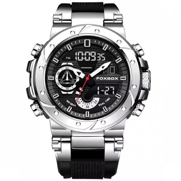 FOXBOX Teo karóra Ez a FOXBOX Teo karóra a technológia és a dizájn mesterművét képviselik. Úgy tervezték, hogy magára vonzza a figyelmet minden helyzetben. Elegáns és kifinomult, tökéletes választás mindenkinek, aki értékeli a luxust és a pontosságot. A karóra tokja tartós acélból készült, amely hosszú élettartamot és magas szintű ellenállást garantál a mindennapi