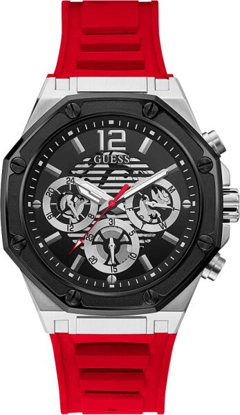 Márka: GUESS | Kollekció: MOMENTUM | Modell: GW0263G3 | Garancia: 2 évek | Szín: fekete | Szín: piros | Tok színe: fekete árnyalat | Tok színe: ezüst árnyalat | Tok anyaga: nemesacél | Táplálás: elem | Szíj anyaga: szilikon | Funkciók: 24-órás számlap | Funkciók: Dátum – a hónap napja | Funkciók: Dátum – a hét napja | Vízálloság: 50M/5ATM | Üveg: ásványi | Forma: