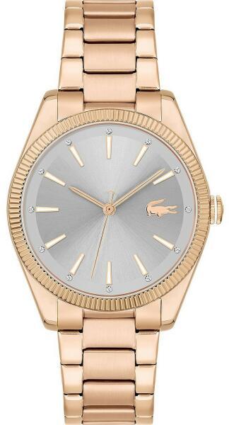 Lacoste Capucine női karóra 2001242 egy kerek formájú, rosegold színű nemesacél óratokkal, szürke analóg számlappal és rosegold nemesacél szíjjal rendelkező divatos Lacoste karóra. Az óra elemmel működő kvarc szerkezettel és 3 ATM vízállósággal rendelkezik, tehát cseppálló. Ez a fantasztikus óra most 78900 áron megrendelhető webshopunkban, melyre 24 hónap garanciát