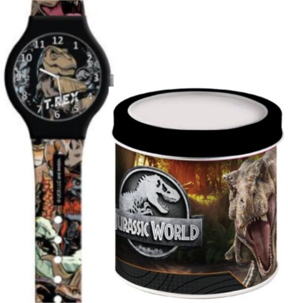 Jurassic World analóg karóra fém díszdobozban Hivatalos magyarországi forgalmazótól. Leírás: A Jurassic World kis rajongói most egyre többet lehetnek a kis dinoszauruszokkal, még abban az esetben is ha el vannak menve otthonról, hiszen kezükön hordhatják. Ez az analóg karóra díszítve lett egy dinóval, pontosabban egy T-Rex kapott helyet az óra belsején, míg a szíjat több